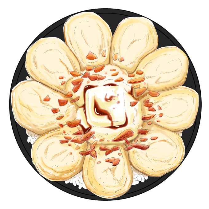中央にバターを乗せ、醤油をかけて、フタをして3分待てばできあがり。
